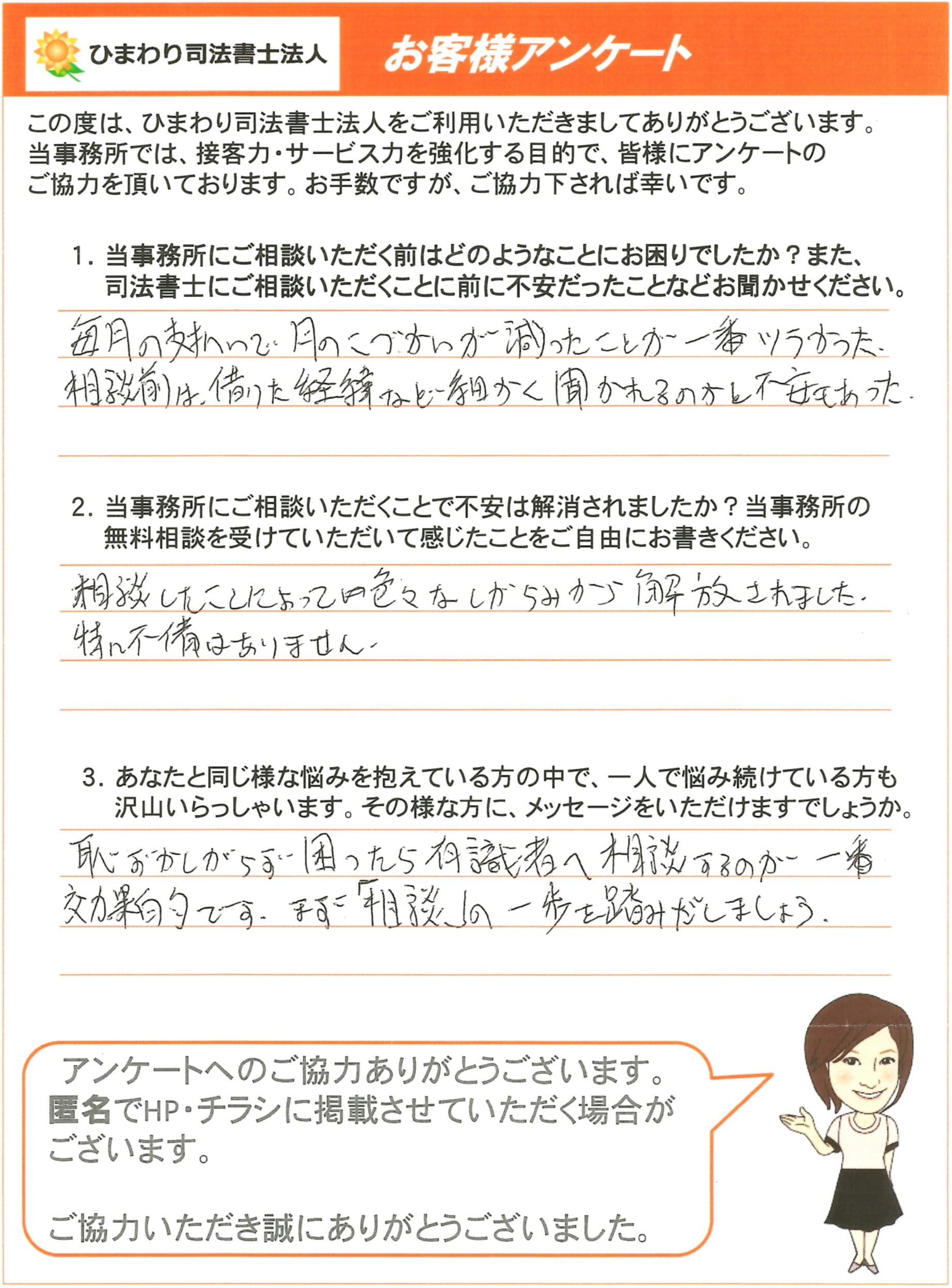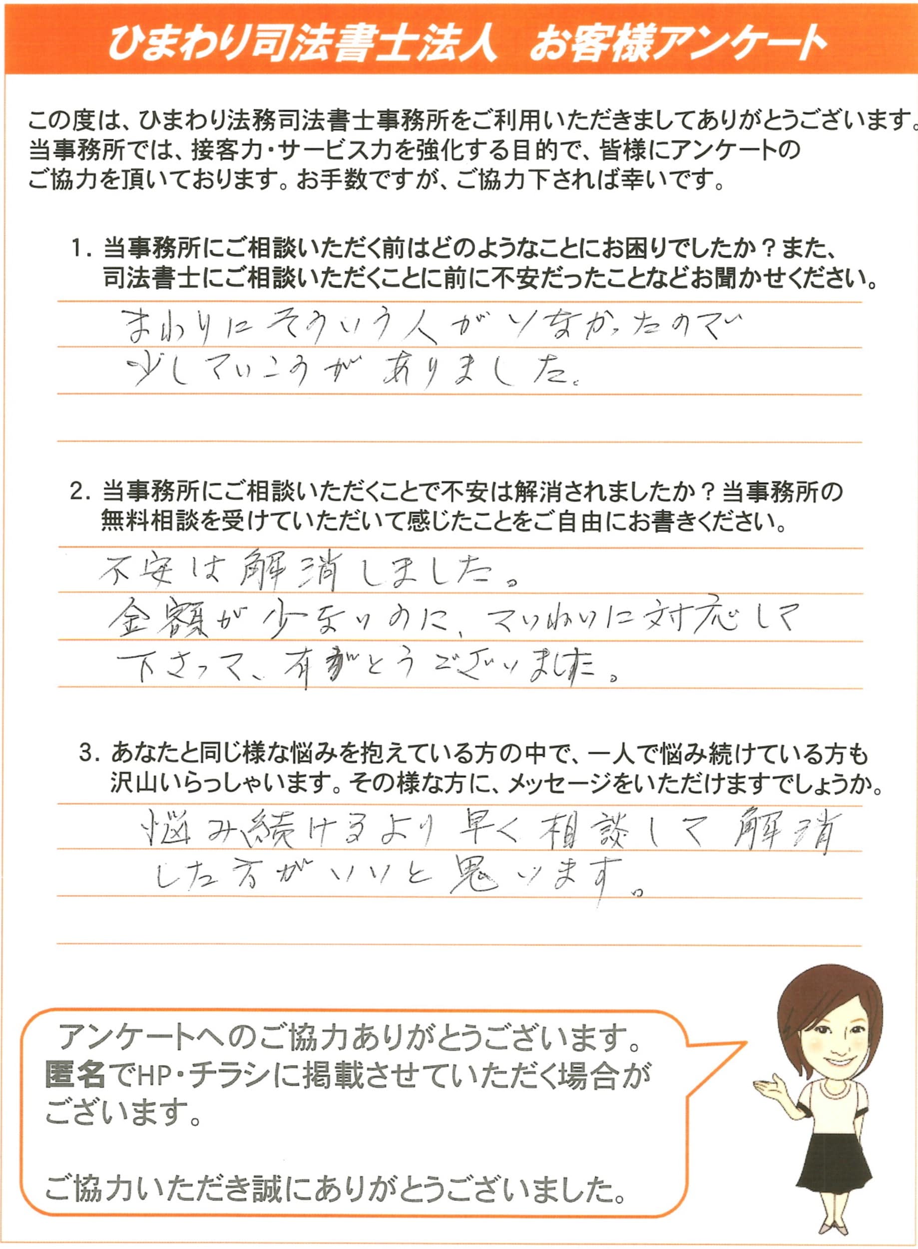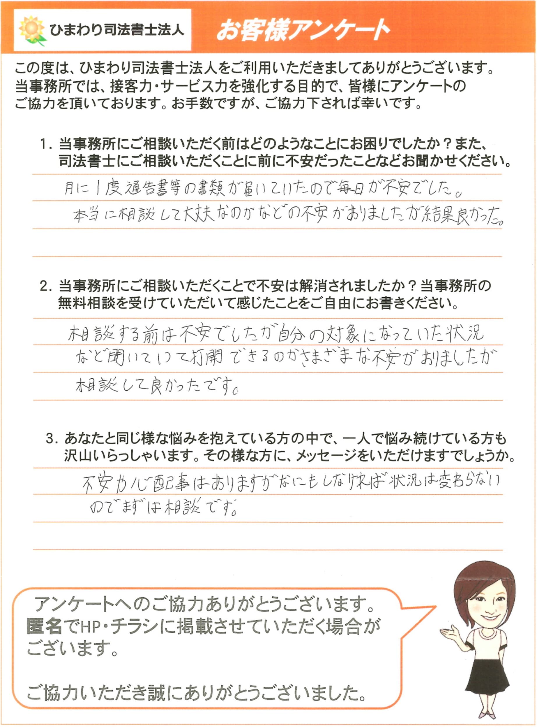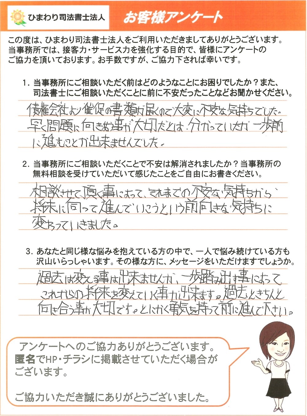 それでは、ひまわり司法書士法人へ時効援用の手続きを依頼した人達の感想を紹介します。