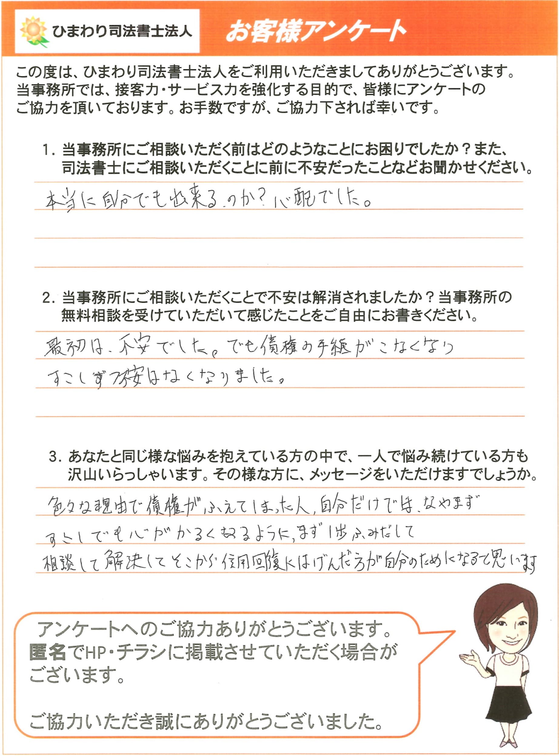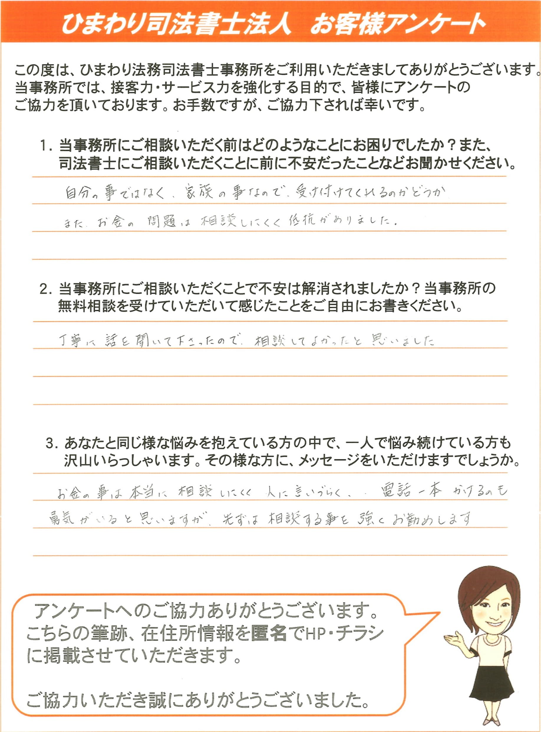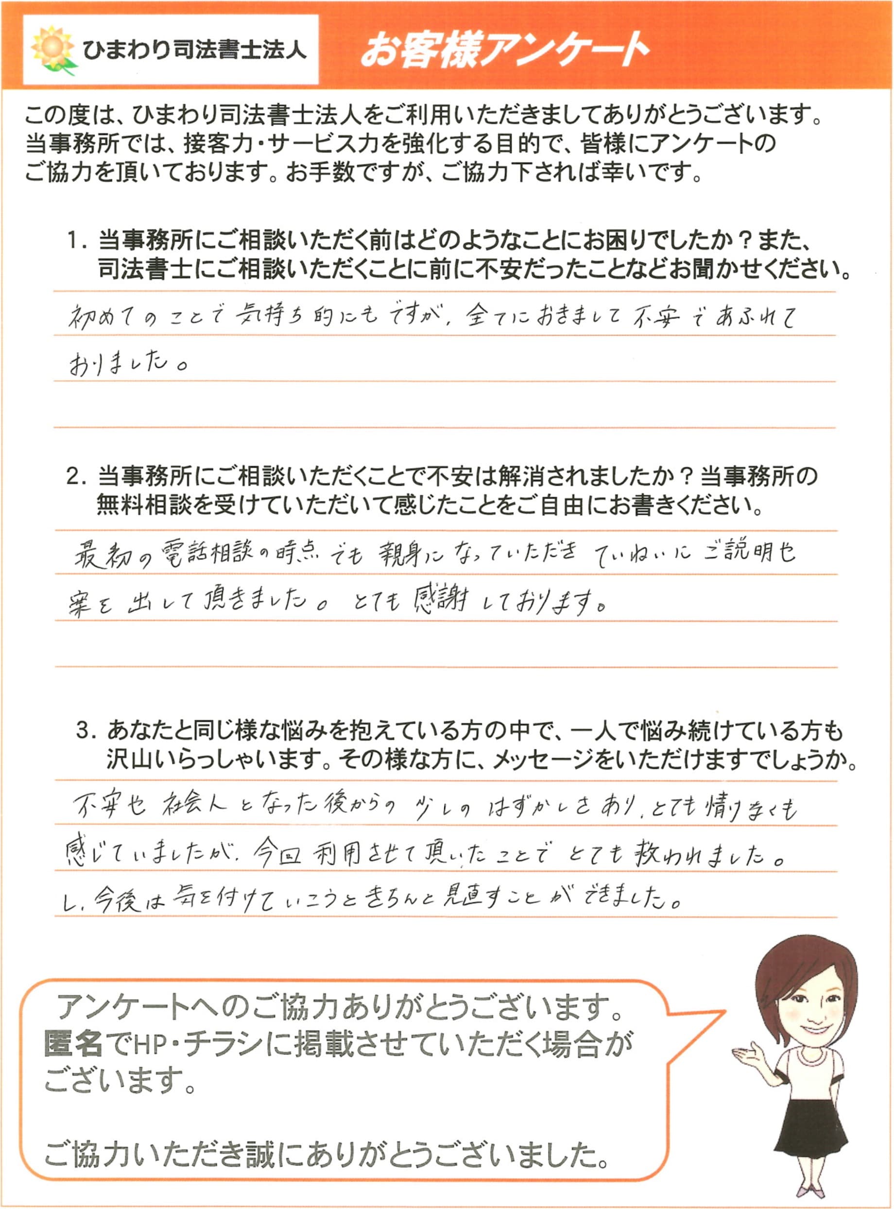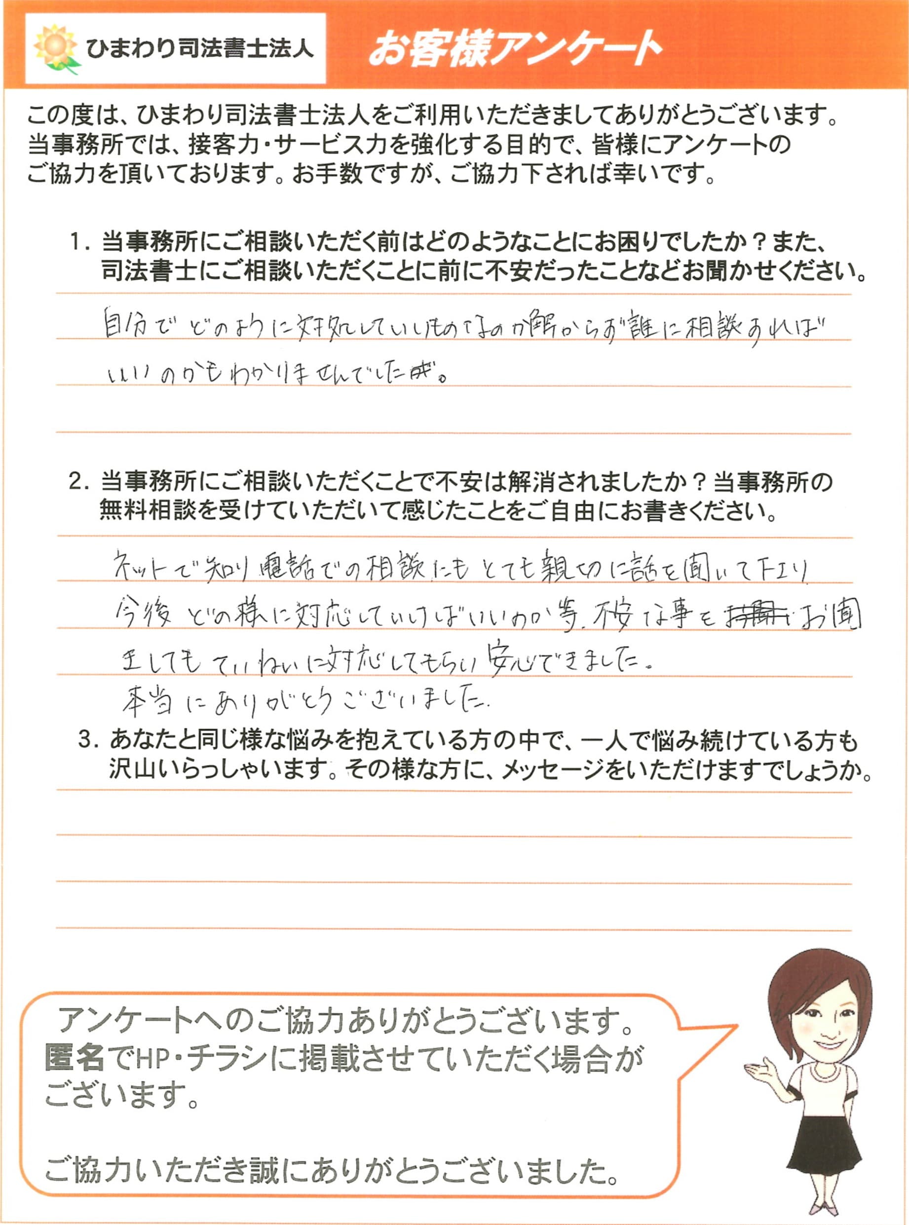 それでは、ひまわり司法書士法人へ時効援用の手続きを依頼した人達の感想を紹介します。