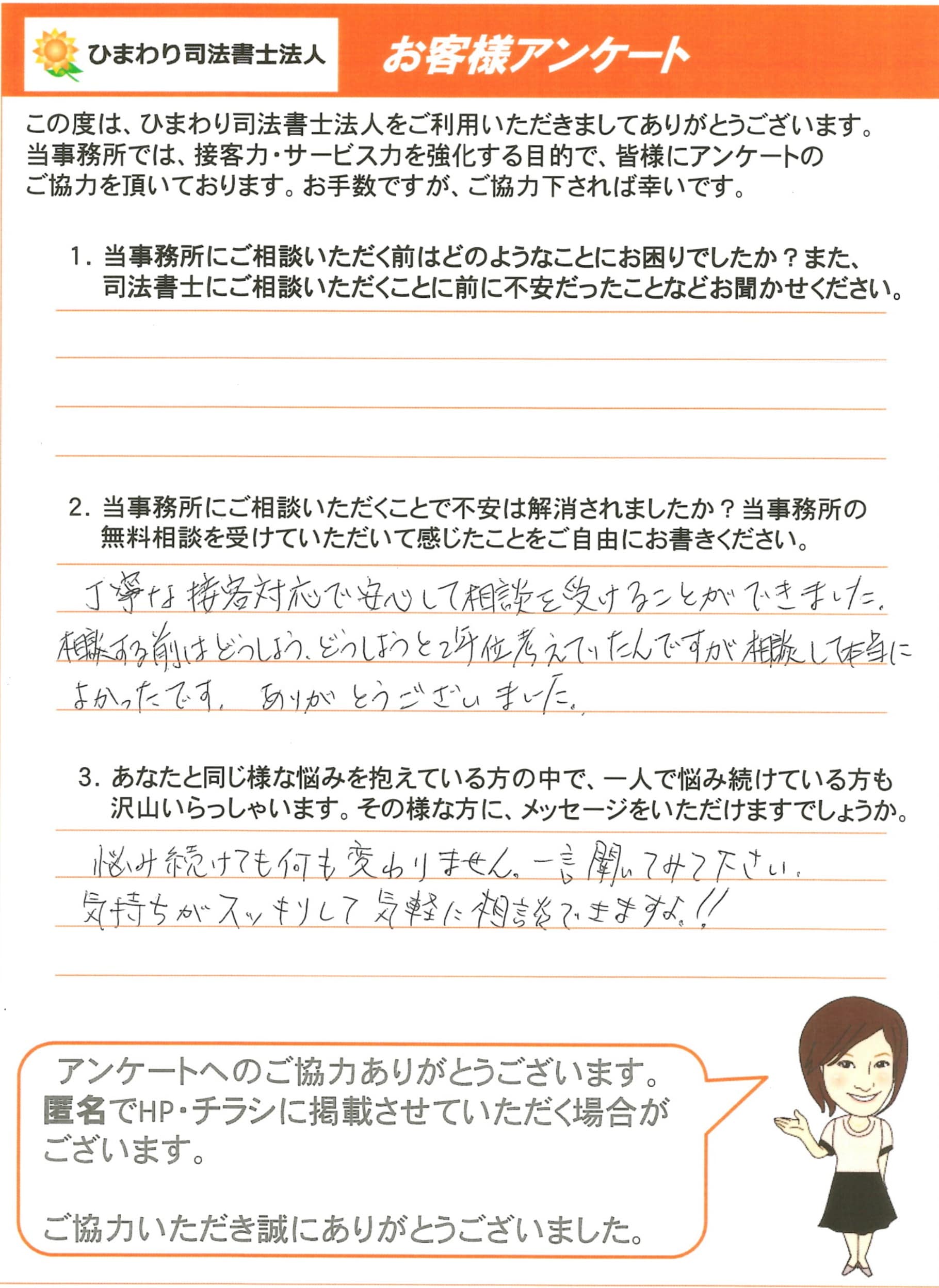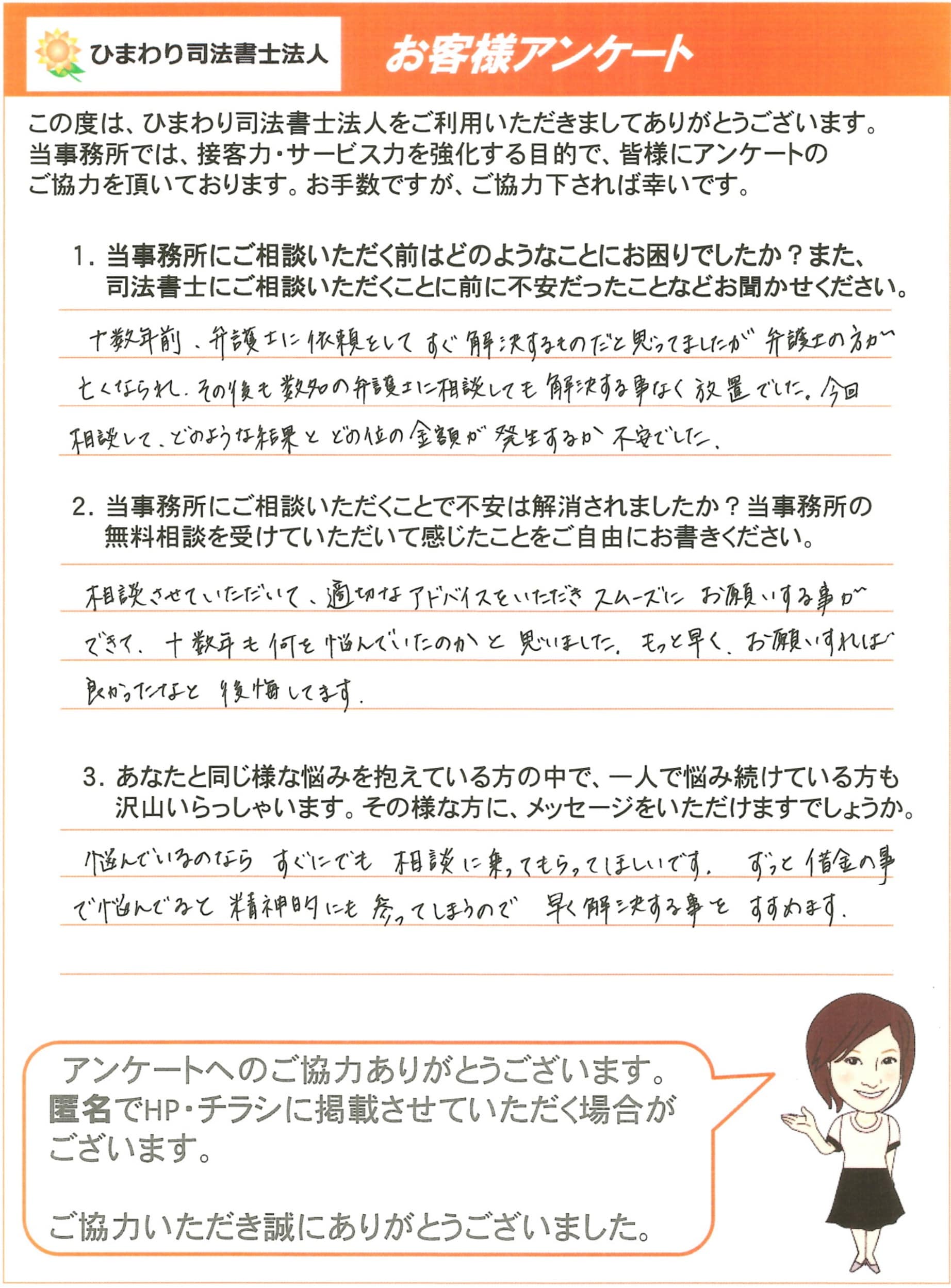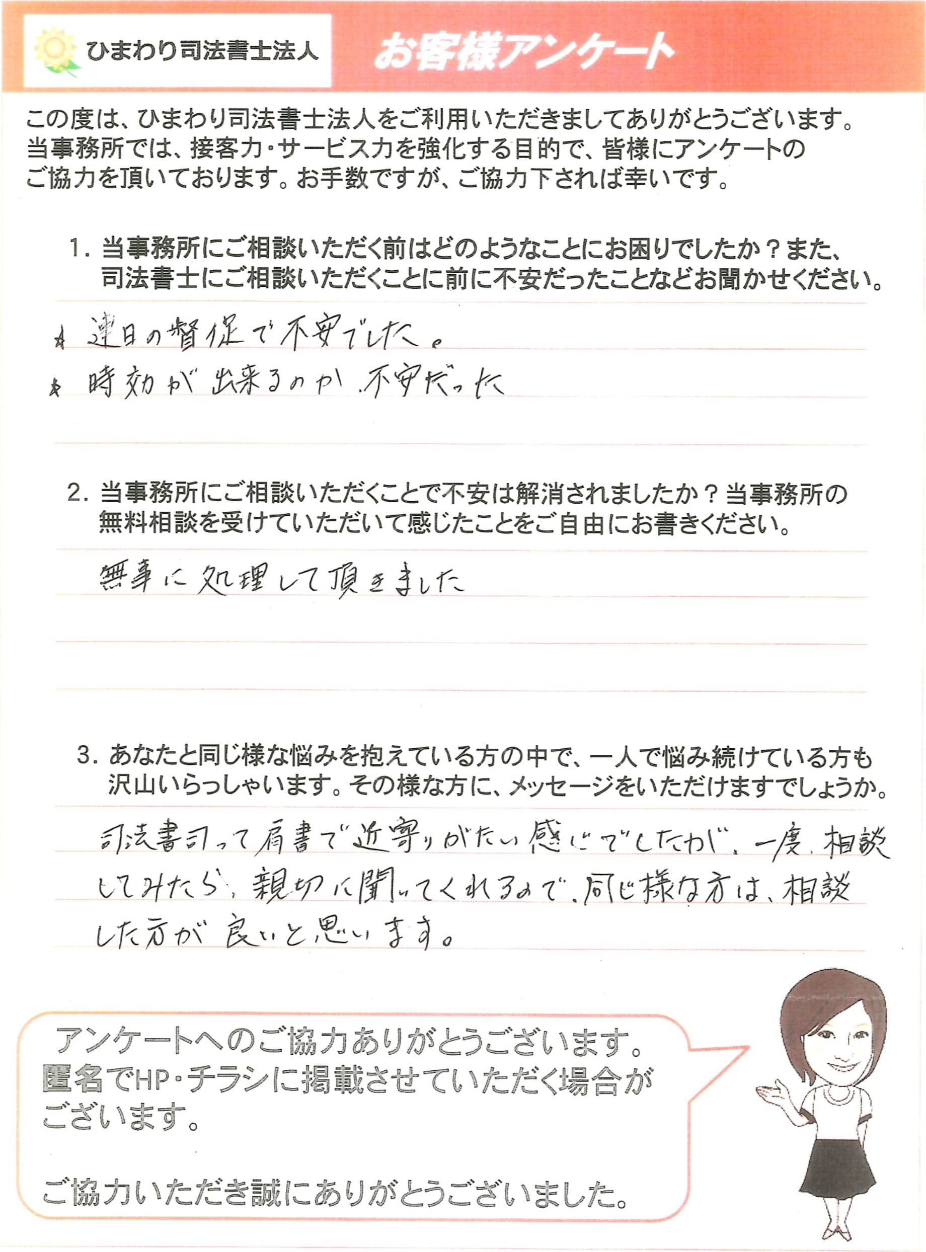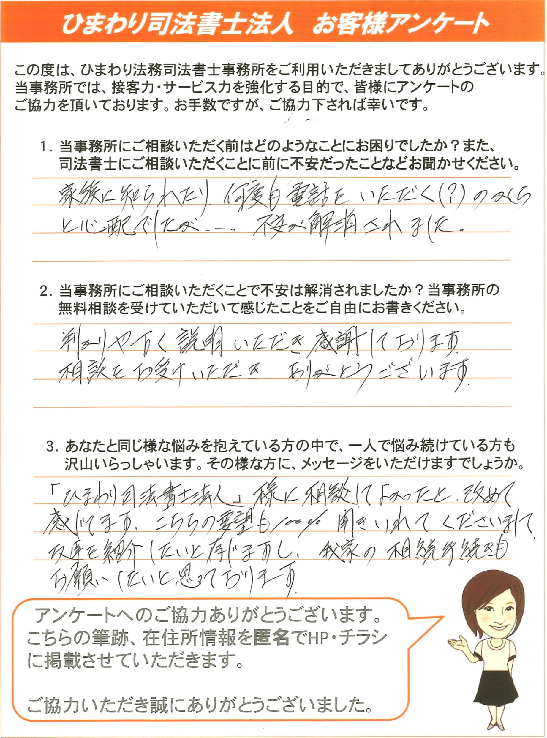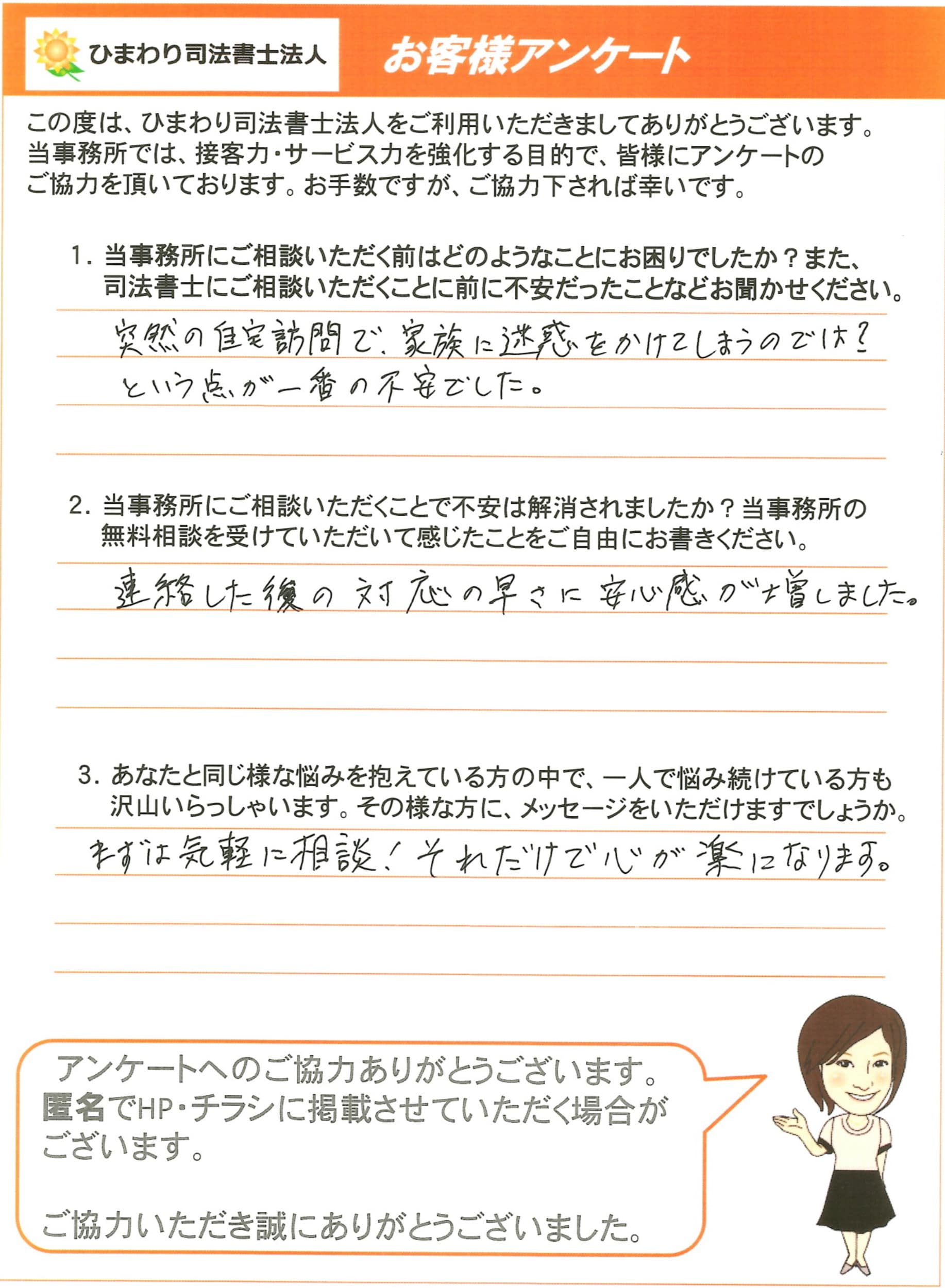 それでは、ひまわり司法書士法人へ時効援用の手続きを依頼した人達の感想を紹介します。