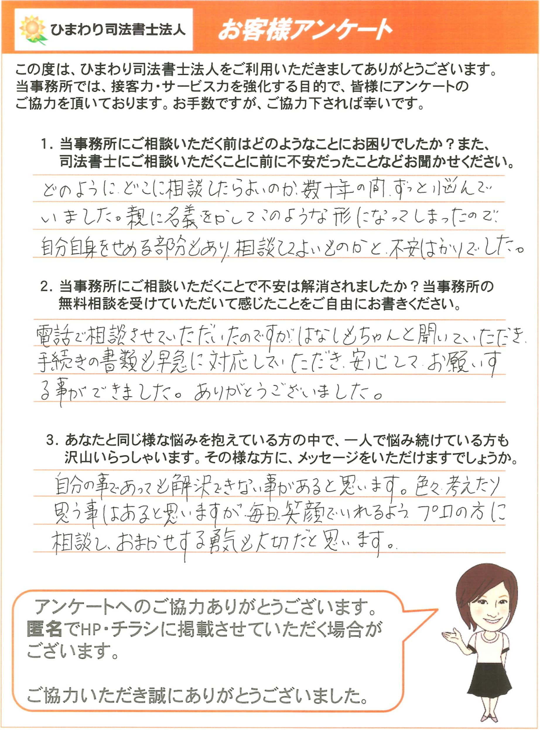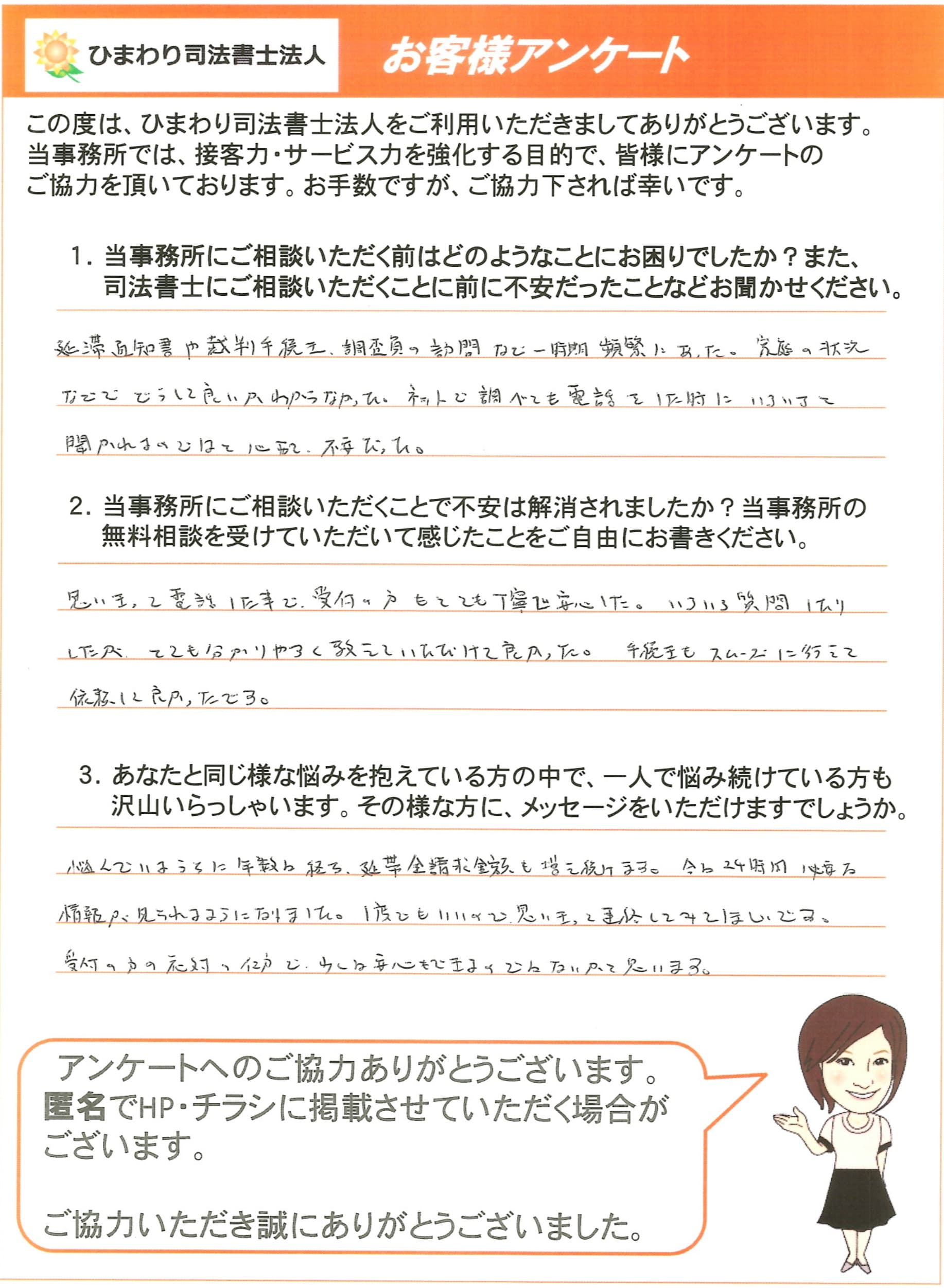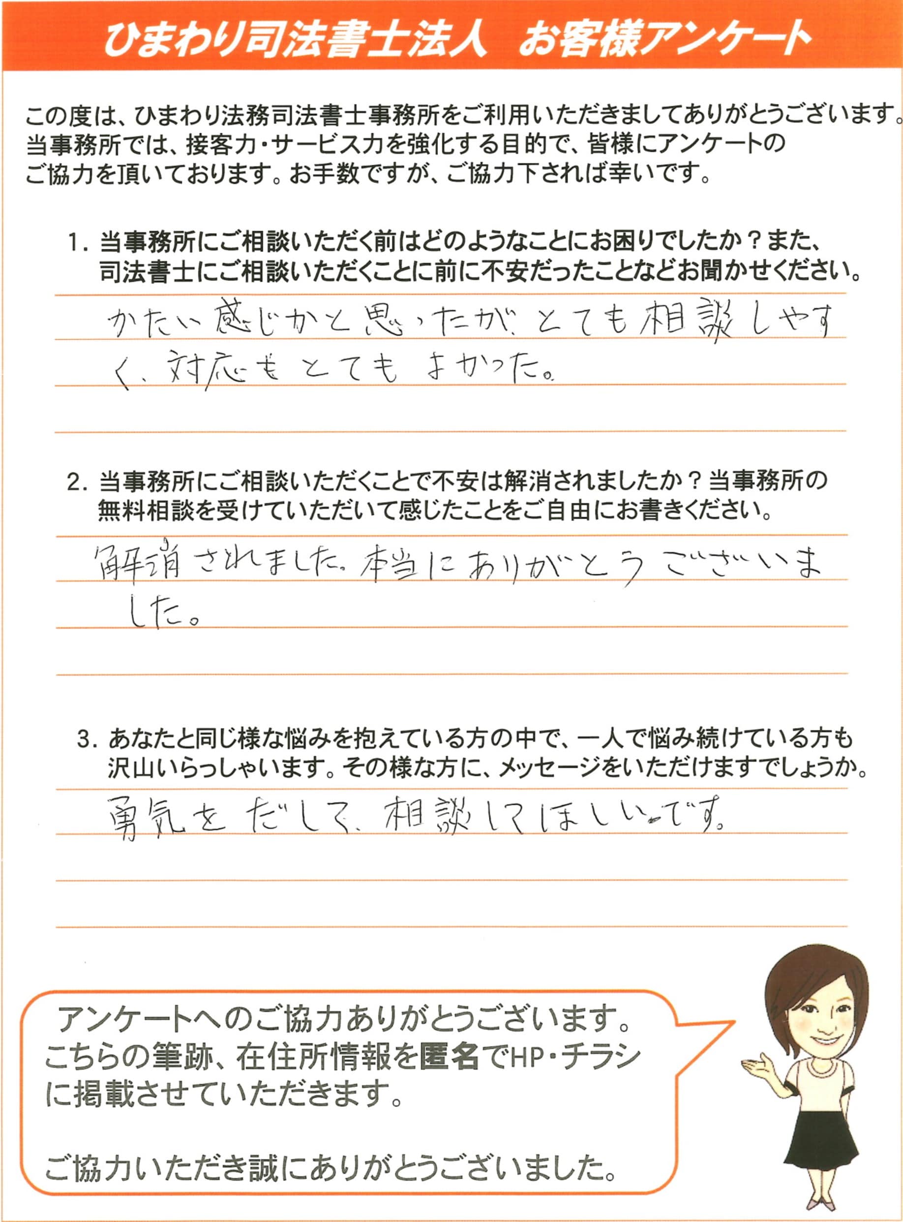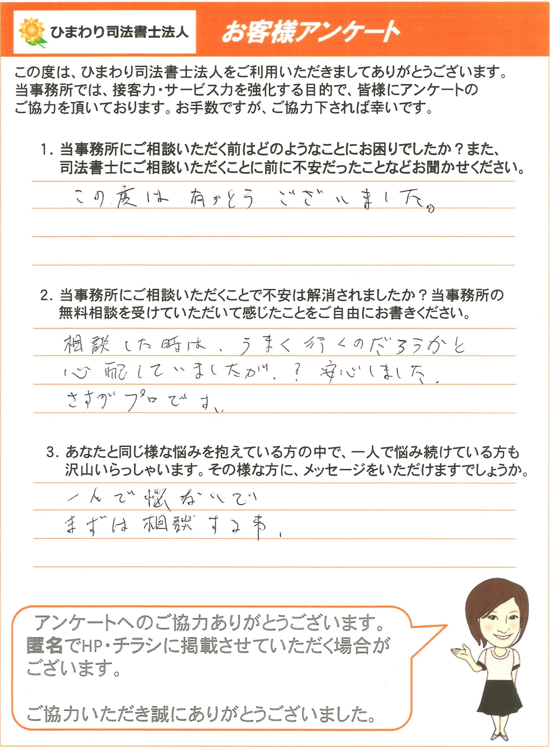 それでは、ひまわり司法書士法人へ時効援用の手続きを依頼した人達の感想を紹介します。
